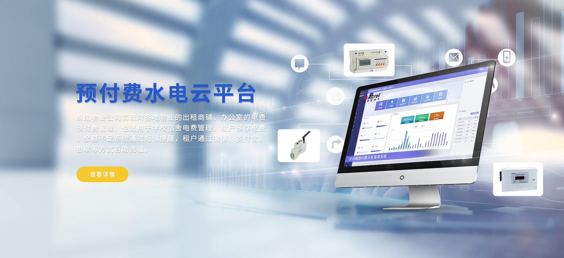 安科瑞提供的解決方案包括Acrel-EIoT能源物聯(lián)網(wǎng)云平臺(tái)變電所運(yùn)維云平臺(tái)安全用電管理云平臺(tái)環(huán)保用電監(jiān)管云平臺(tái)、智慧消防云平臺(tái)、能源管理云平臺(tái)、工業(yè)企業(yè)能源管控平臺(tái)、遠(yuǎn)程預(yù)付費(fèi)云平臺(tái)餐飲油煙監(jiān)管云平臺(tái)、電動(dòng)汽車/電瓶車充電樁收費(fèi)管理云平臺(tái)、電力監(jiān)控/無(wú)線測(cè)溫系統(tǒng)、電能質(zhì)量治理系統(tǒng)、電氣火災(zāi)監(jiān)控系統(tǒng)消防設(shè)備電源監(jiān)控系統(tǒng)防火門監(jiān)控系統(tǒng)應(yīng)急照明和疏散指示系統(tǒng)、智能照明控制系統(tǒng)、醫(yī)用隔離電源絕緣監(jiān)測(cè)系統(tǒng)等,幫助用戶實(shí)現(xiàn)能源智能化、可視化、精細(xì)化管理,提高用能效率和用能安全,為企業(yè)節(jié)能降耗和實(shí)現(xiàn)能源數(shù)字化建設(shè)提供數(shù)據(jù)服務(wù)。